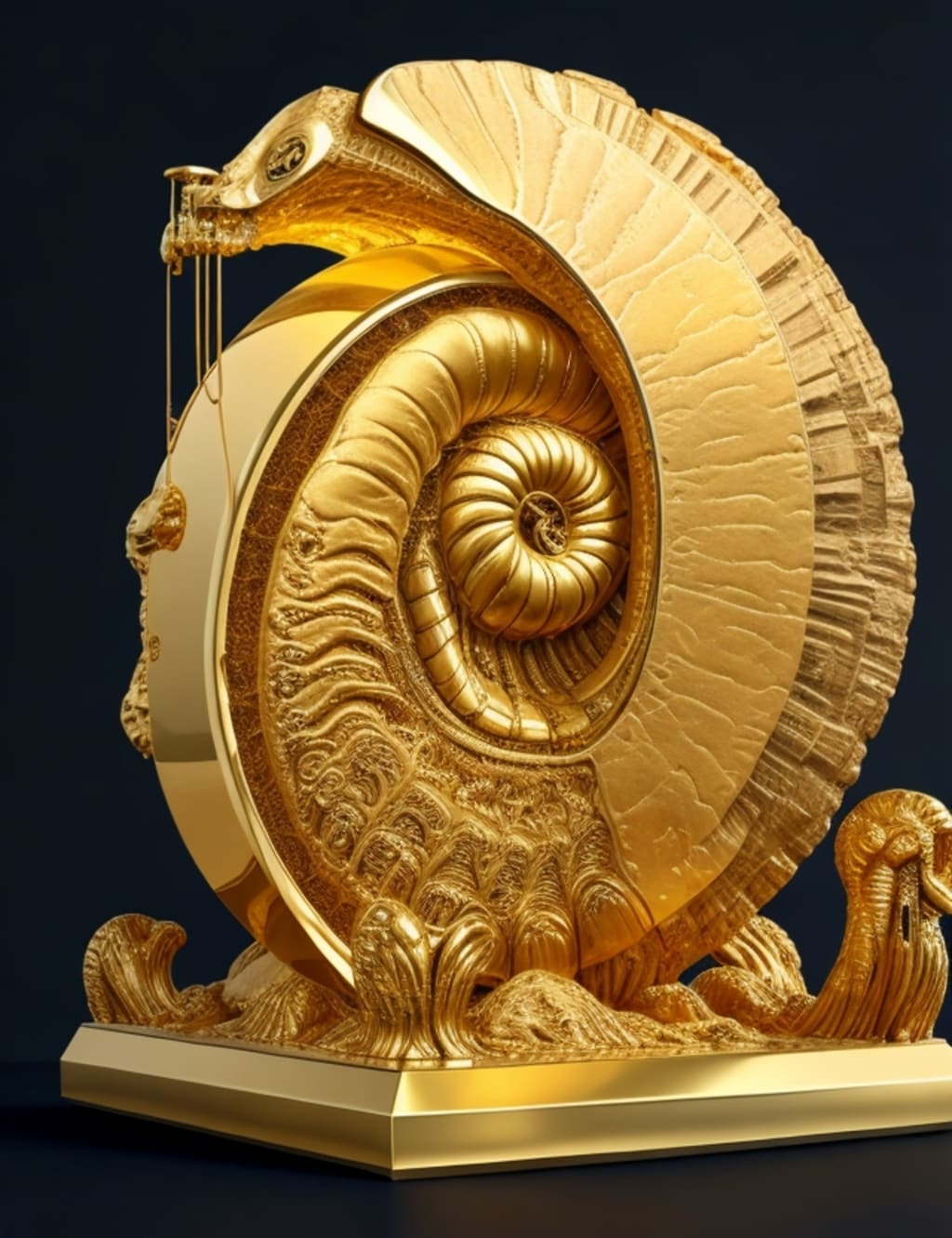 These golden fossils aren't literally made of gold. Instead, they're golden in color due to a process called pyritization - a chemical reaction where the original material of the fossil gets replaced by pyrite, often known as fool's gold. The result? A spectacular, shiny fossil with a golden glow.