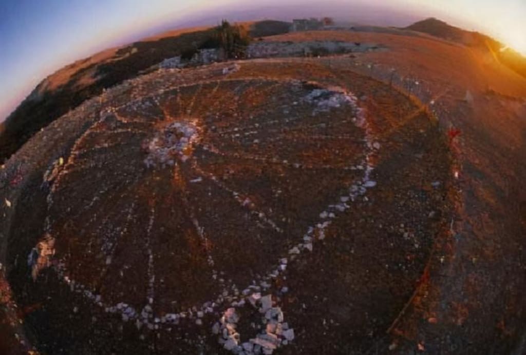 This wheel-shaped stone cairn is located on top of a hill in Wyoming, USA. Many shoebox-sized stones are arranged in the shape of a wheel with a diameter of about 25m. The direction from the cairn at the center of the circle to one of the outer rock piles is exactly the direction of the sunrise at the summer solstice. The other three directions pointed out by Shibi are Sirius, Arudibar, and Sensual Four. These three bright stars have strange legends in Cheyenne Indian mythology. There are about 70 of these rock piles in North America, some of which are 1,000-2,000 years old.