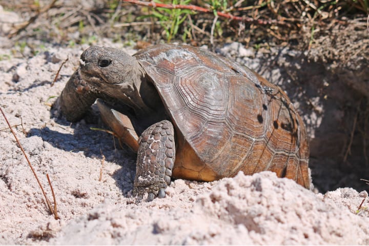 The gopher tortoise is accurately named after the fact that they often dig burrows. Over 350 species rely on this tortoise to dig burrows for these animals to live in. Without this tortoise's amazing ability to build perfect homes for snakes, frogs, and more, it would be harder for these animals to find safe homes away from potential predators.