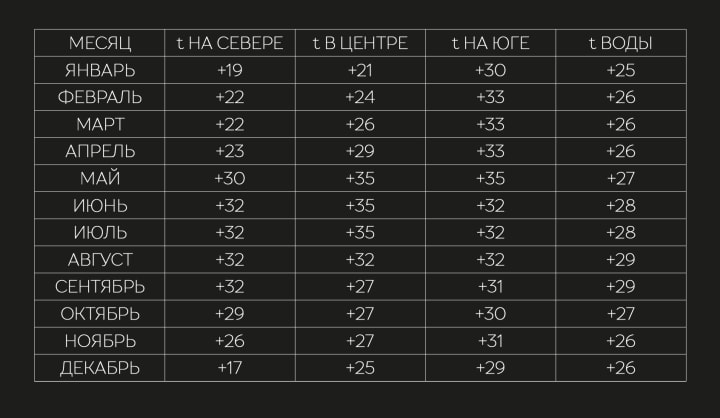 The climate in Vietnam is warm and comfortable all year round. It is especially pleasant in winter, when even in the coldest months the temperature does not drop below 15-20°C. In comparison, in warm Russian cities such as Sochi or Krasnodar, winter temperatures can drop to 0°C and below.