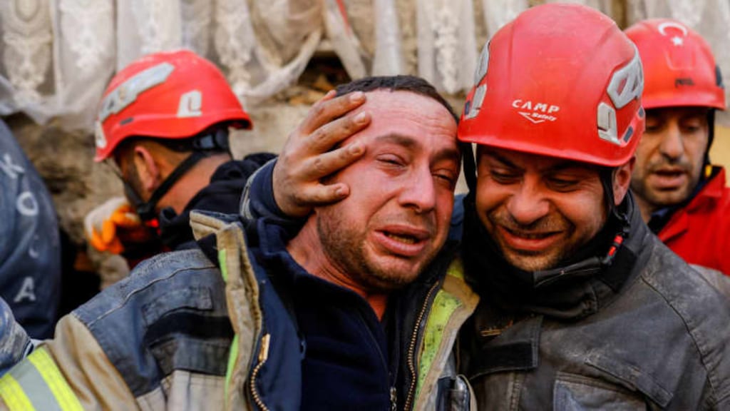 First responders rescue 7-year-old Haci Ahmet under rubble of 8-storey-building after 7.7 and 7.6 magnitude earthquakes hit multiple provinces of Turkey on Feb. 12, 2023.