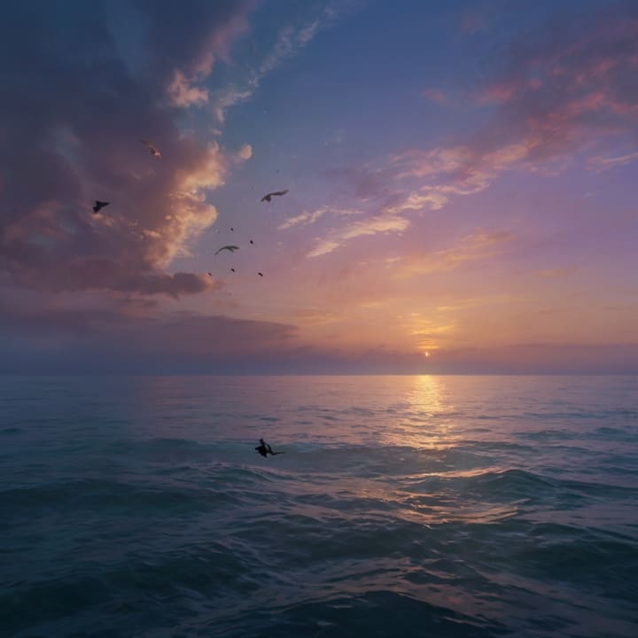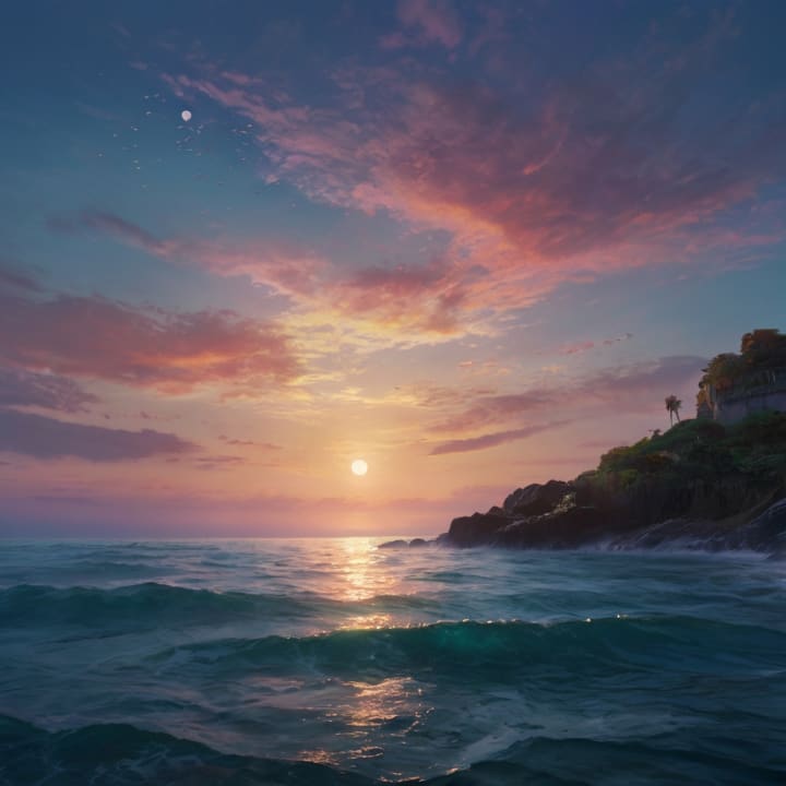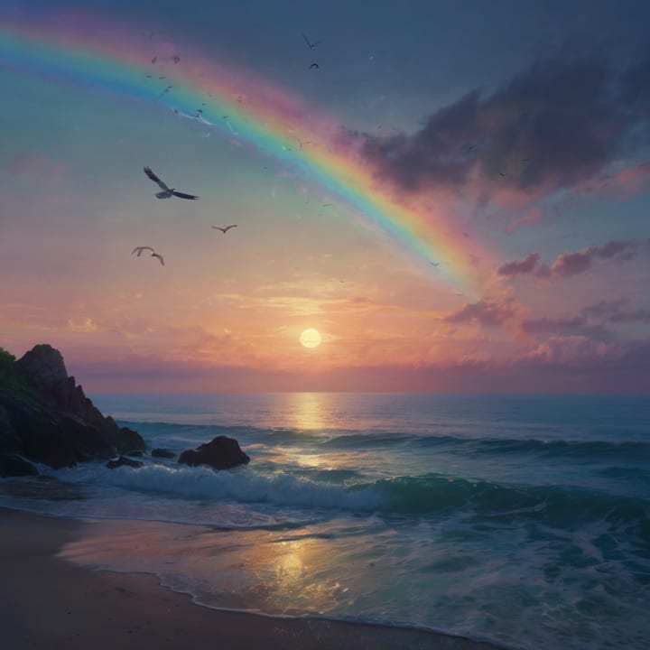This tableau invites us to find meaning in simplicity. It serves as a reminder to pause and appreciate the fleeting yet profound beauty of the world. Twilight, rainbows, and oceans symbolize life's transitions, unity, and boundless potential.