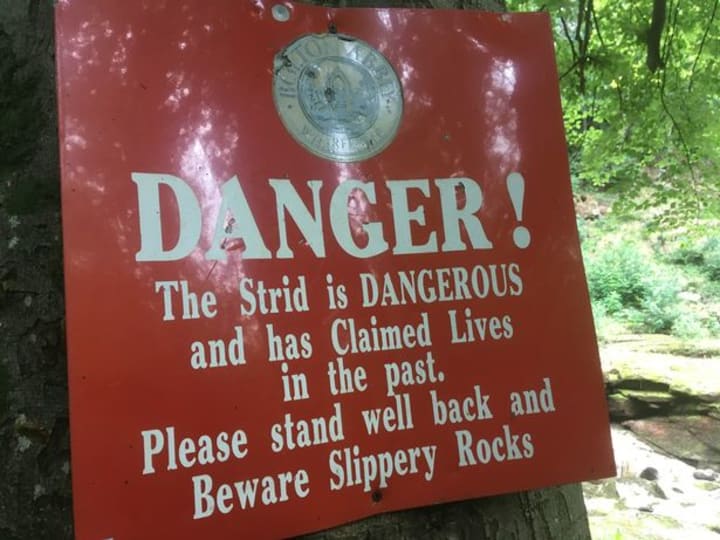 It is completely free to visit The Strid, however visitors are warned to remember the dangers of such a fast flowing river and the signs remind people that it is still one of the most dangerous places on earth.