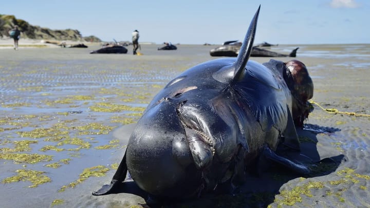 Whale skeletons stand guard around the coastline of Fuerteventura in the Canary Islands, a stark reminder of the damaging effects of military sonar. Sonar from ships and submarines is thought to be one of the contributing factors to whale strandings, confusing the whales' own sonar and casuing them to beach themselves on the shore.