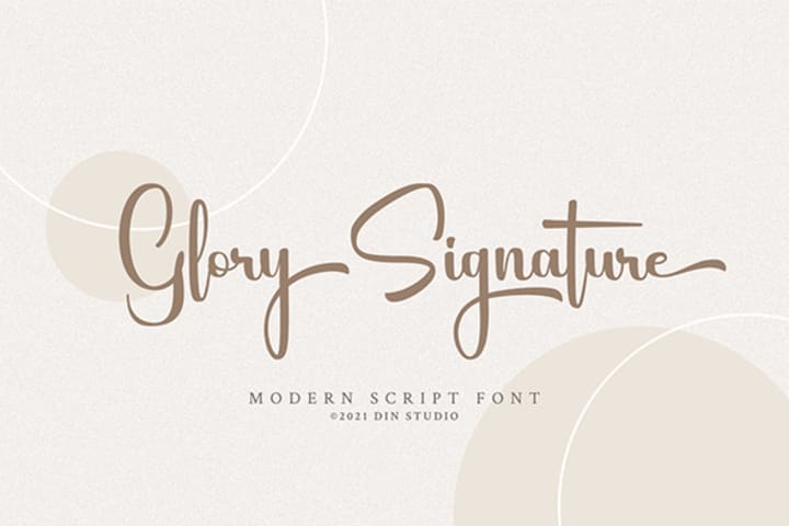 Still discussing stylish script fonts, the next recommendation comes from Glory Signature. Currently, you can use Glory Signature as a display or title with a romantic and elegant theme. As a modern font style aesthetic, Glory Signature is also suitable to fill in fun or minimalist designs.
