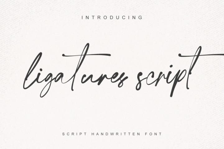 Switch to the next font, Ligatures Script is a typical handwriting font with a firm style. You may often find fonts like Ligatures Script in designs with elegant and romantic nuances, such as wedding invitation templates and greeting cards. Therefore, this font will be a great choice whenever you need an aesthetic option!