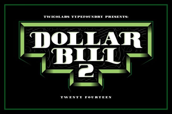 Dollar Bill 2 font is a fresh and modern type. This font only provides capital letters and numbers that can make your design stand out as a work of art. Dollar Bill 2 font letters and numbers are wide and bold. Therefore, typography that uses Dollar Bill 2 will be easier to notice because it has pretty good legibility.