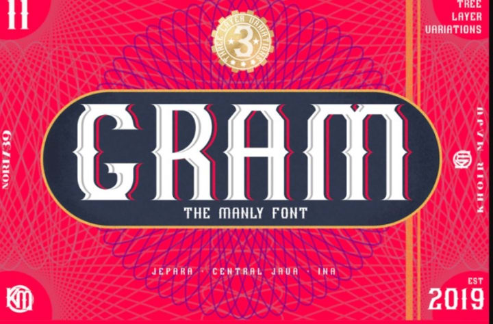 Your design will also look stylish if you use this font because there are layers that form thin shadow lines. The Gram font presents a non-cramped look due to the little space between letters. That means this type of font is very clear and easy to read.