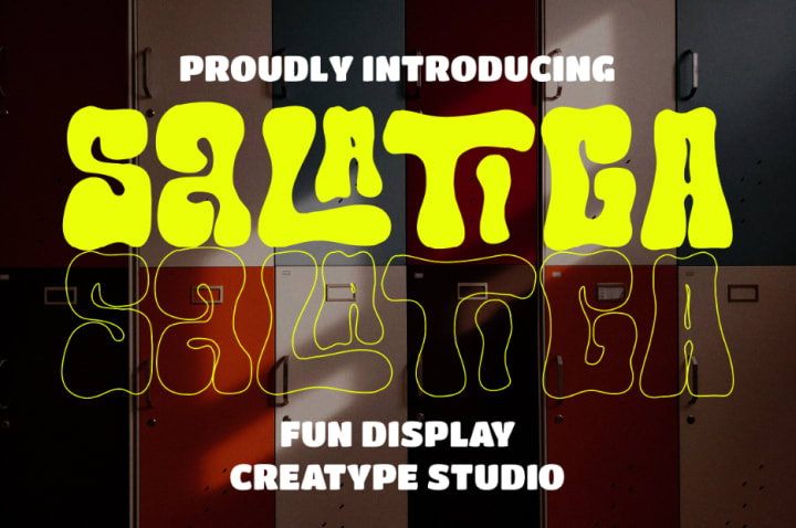 The next free Groovy font recommendation is Salatiga from Fontspace. This bold font looks cute with the super bold and puffy parts at the bottom. While the upper design is a bit slimmer with rounded corners.