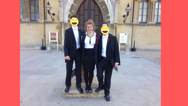 Because Oxford is such a weird and old university, it has tons of leftover and frankly meaningless traditions — one of which was being forced to wear a specific formalwear outfit and a gown to exams, Principal’s Collections, and graduation. It was a white top, dark bottoms, and shoes, with a black ribbon if you were a woman, or a white bow tie if you were a man, along with a gown. The gown looked like a long, black vest with very long shoulder tails. If you achieved a first (70% or higher on your exams) you were permitted to wear a Scholar’s gown, which was more like a poofy cape.