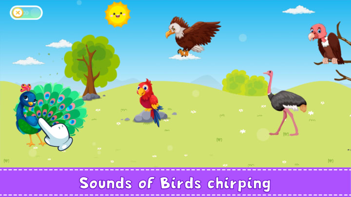 This animal sound for kids learning app has high-resolution images of animals and birds, with each animal sound created by a simple tap on the picture.