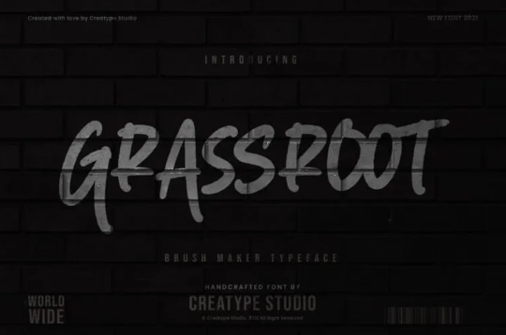 Grassroot is a hand-brush font created by skillful hands to deliver an exceptional visual impact. Thanks to its bold strokes, this font appears totally trendy and sophisticated.