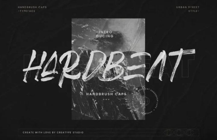 Hardbeat is a font that conveys a message full of energy. Shown with a highly distinctive hand brush, the texture of this font stands out as detailed and bold.