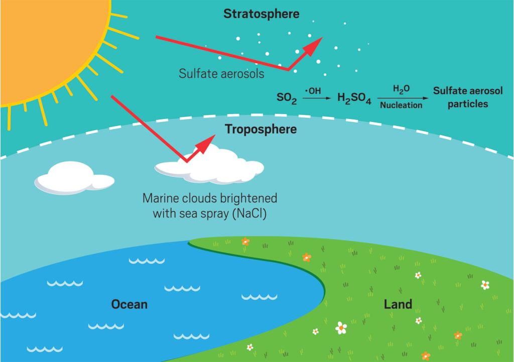 Stratospheric Aerosol Injection – Releasing tiny reflective particles (like sulfur dioxide) high into the stratosphere to mimic the cooling effects of volcanic eruptions.