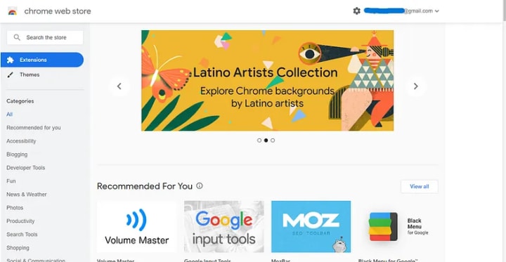 - In the address bar, type “chrome.google.com/webstore” and press Enter