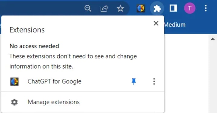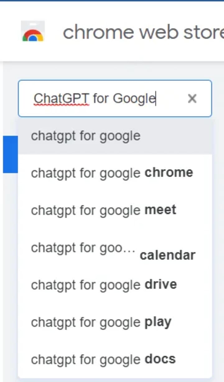 - In the search bar, type “ChatGPT for Google” and press Enter