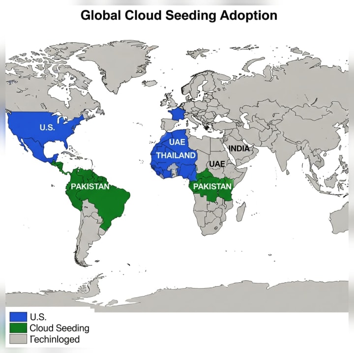 South Asia: India and Pakistan have tested it during monsoon seasons and pollution crises. In 2023, Pakistan worked with the UAE to bring rain to polluted skies.