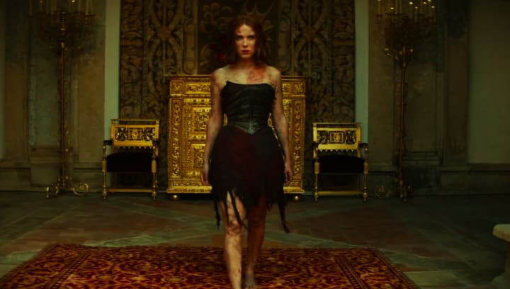 This is a Red Priestess from the kingdom of Ora, a name which means "golden" in Latin, fitting for the richest kingdom around. Gold can be seen throughout their land, such as the royal carriage and El's wedding dress. Speaking of which, the Red Priestess has come to deliver a message about marriage. The Queen of Ora, portrayed by Robin Wright, who you may remember played another famous royal in "The Princess Bride," has extended an offer for Elod to wed her son, Prince Henry. This is a win-win; her son gets a bride, and the Bayfords get to enjoy Ora's vast wealth, essentially saving their poor, famished people. As Elod will later tell her husband-to-be, "My happiness is a small price to pay for the future of my people."