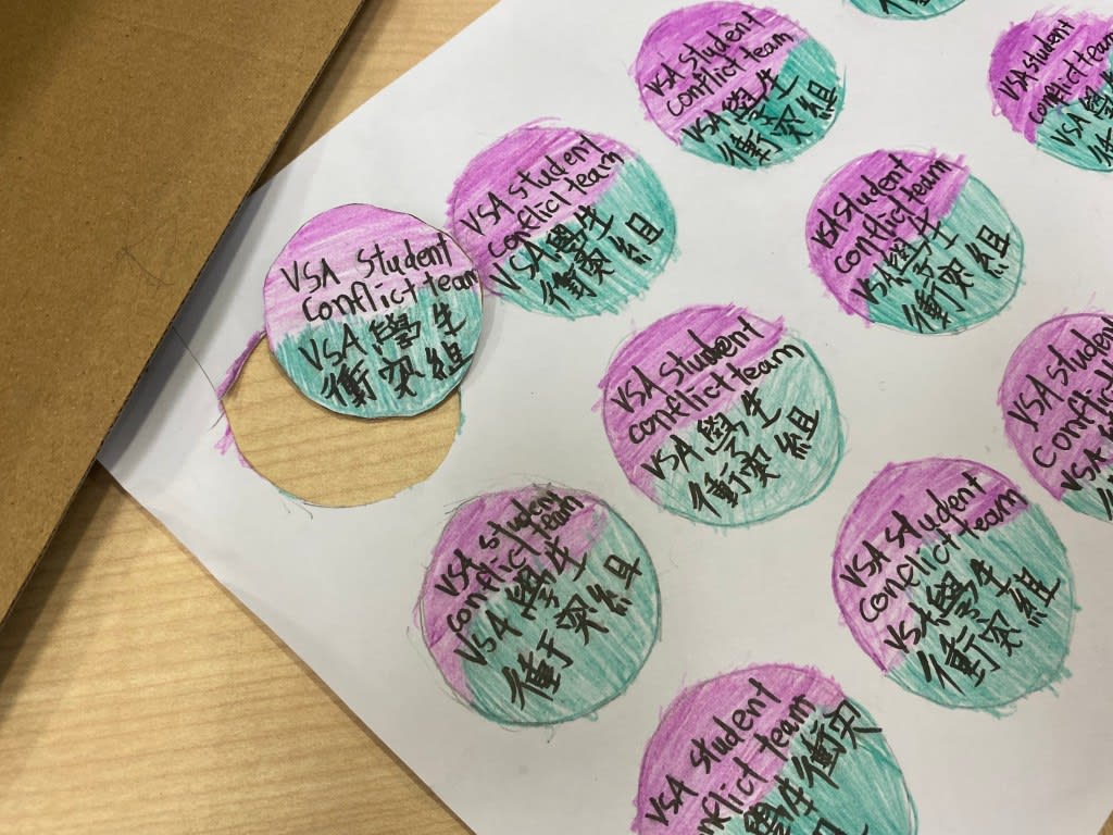 They chose one idea or a combination of ideas to move forward to the Prototype phase. They created a student-led conflict mediation team, a website for tracking student conflicts and a mindfulness app. A wristband that vibrates and detects raised voices to remind them to be calm was also developed.