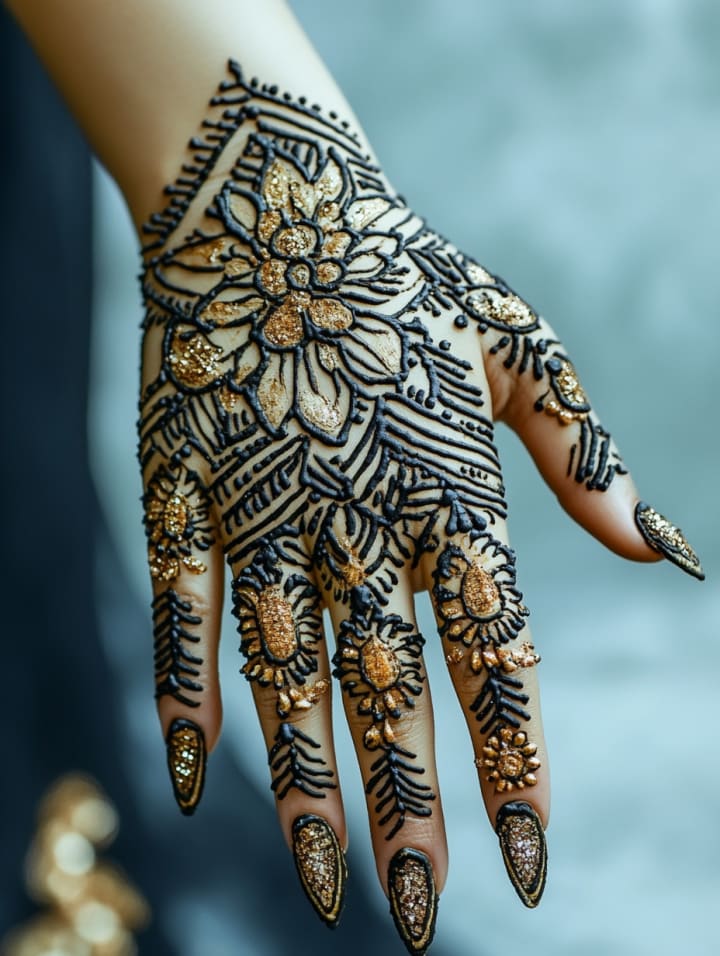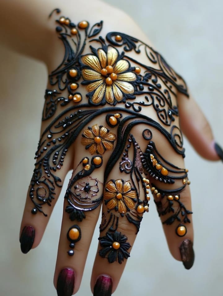 Creating an elegant Arabic mehndi design for the back of your hand is simple if you follow these easy steps:
