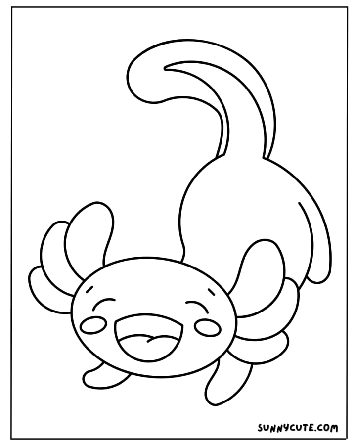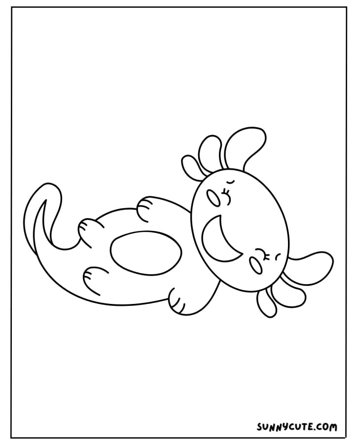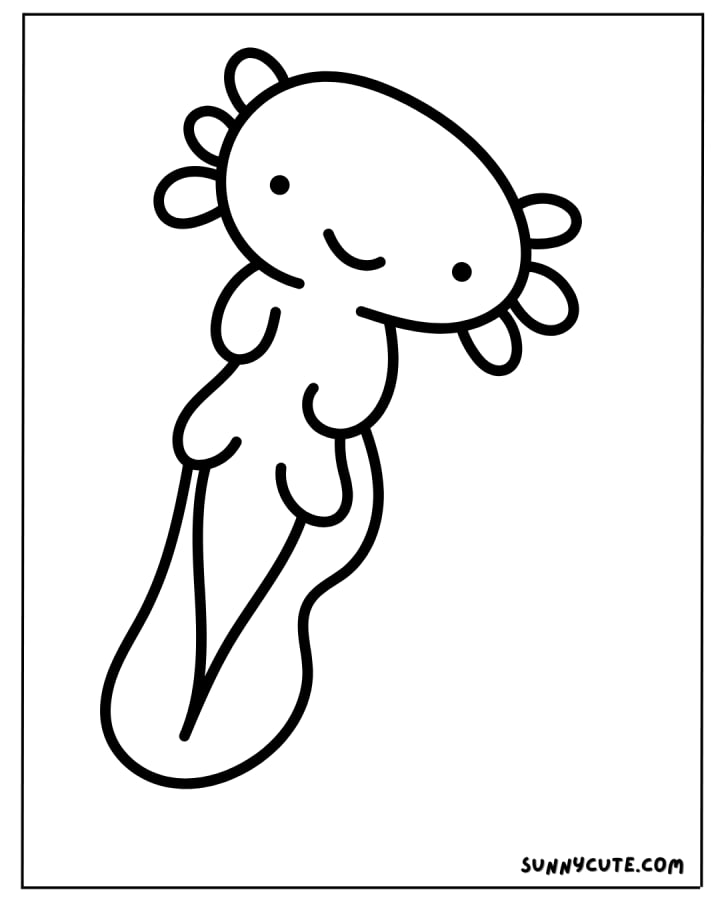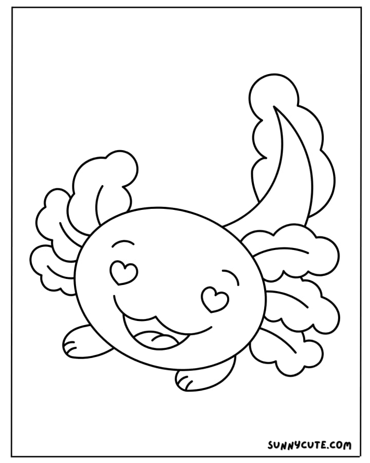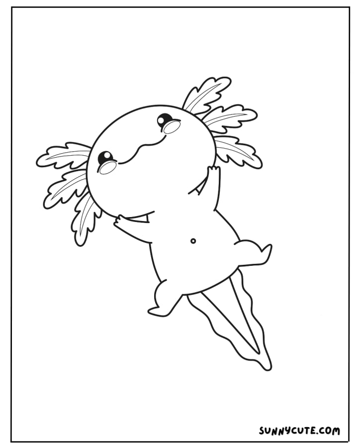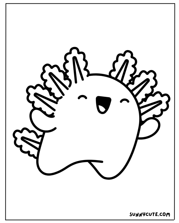 A happy axolotl with big, cute eyes and a cheerful expression to make coloring more fun.