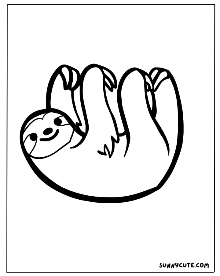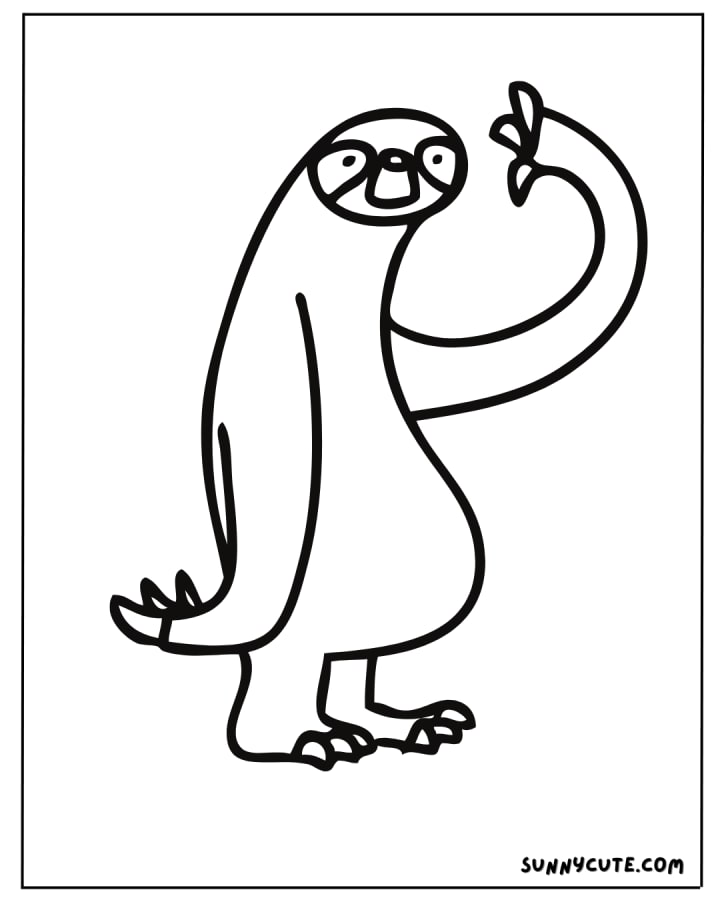 - Simple Cartoon Sloth – A minimalistic and easy-to-color sloth with bold outlines.