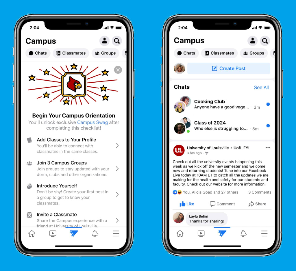 Facebook Campus is a dedicated section of the Facebook application designed for students, a campus profile that differs from its original Facebook profile. To create a campus profile, all students need is their college email and graduation year. Other information such as their principal, class, city, and minor. Once a campus profile is set up, students can discover unique groups and events in their school and connect with interested classmates in the same class. Only people on campus will see this when content is shared on campus.