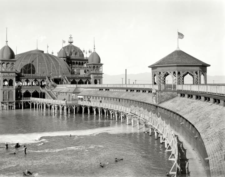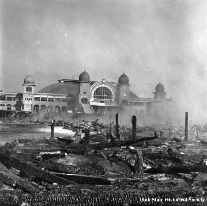 The Saltair Grand was built in 1893 in Magna Utah on top of the Great Salt Lake. At the time it was nicknamed "The Coney Island of the West" due to its entertainment of dances, social gatherings, and swimming activities as a resort.