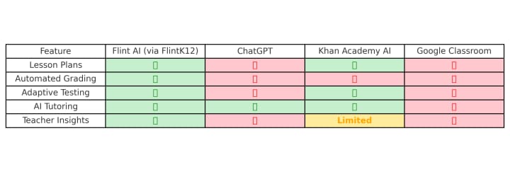 How does Flint AI stack up against competitors like ChatGPT, Magic School AI, Khan Academy’s AI, or Google Classroom integrations?