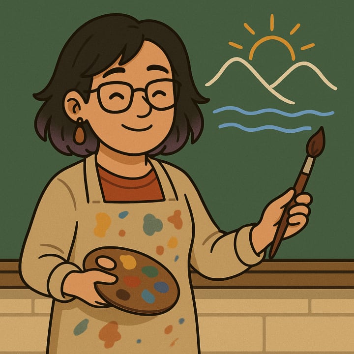 And then there was Ms. Chu, the art teacher. She had purple streaks in her hair, mismatched earrings, and a passion for glitter that should’ve required a hazmat suit. Her classroom was a safe haven. Kids who couldn’t focus in math found peace painting sunsets, and students with rough home lives knew they could cry into a canvas and be handed tissues that smelled like acrylic.