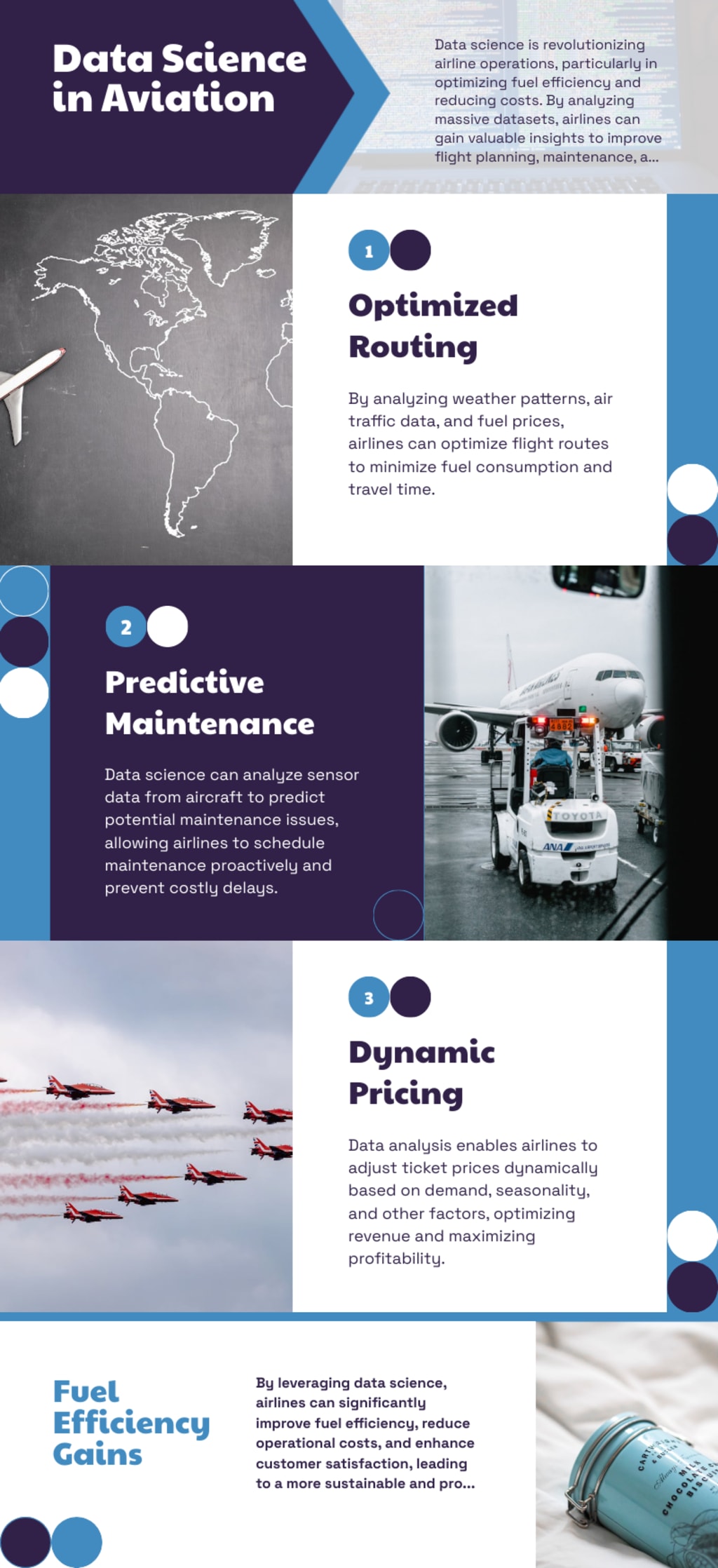 Data science is revolutionizing the aviation enterprise utilizing improving gasoline effectiveness and using price savings. Using best predictions, improved route finding, and general performance tracking on airways offers a method of establishing more intelligent decisions that may lead to improved efficiency and reduced costs. Furthermore, Data Science results in an efficient schedule of maintenance, environment-friendly crew management, and better control of stocks which also leads to fee reductions.