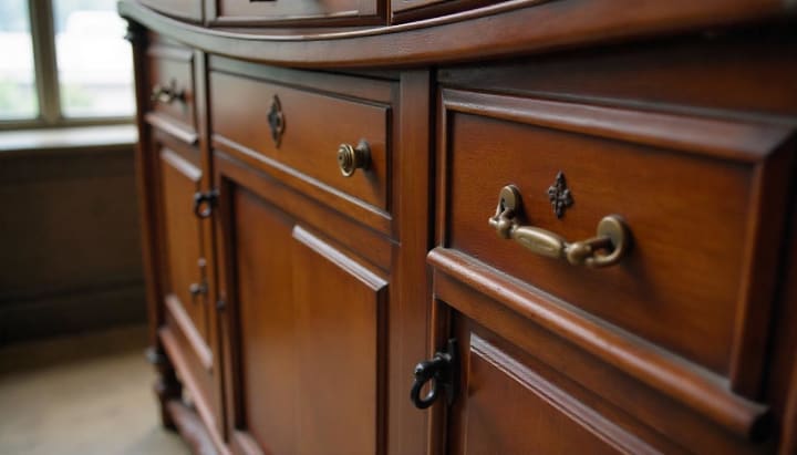 Once the evaluation is complete, the restoration process begins. The next phase often involves carefully disassembling the piece. This may include removing any hardware, drawers, or panels to ensure that each component can be properly cleaned and repaired. Depending on the piece’s age and condition, old varnishes, paints, or finishes are gently stripped away to reveal the original wood beneath. This delicate process helps to prevent any damage to the wood’s surface, allowing the natural grain and color to shine through.