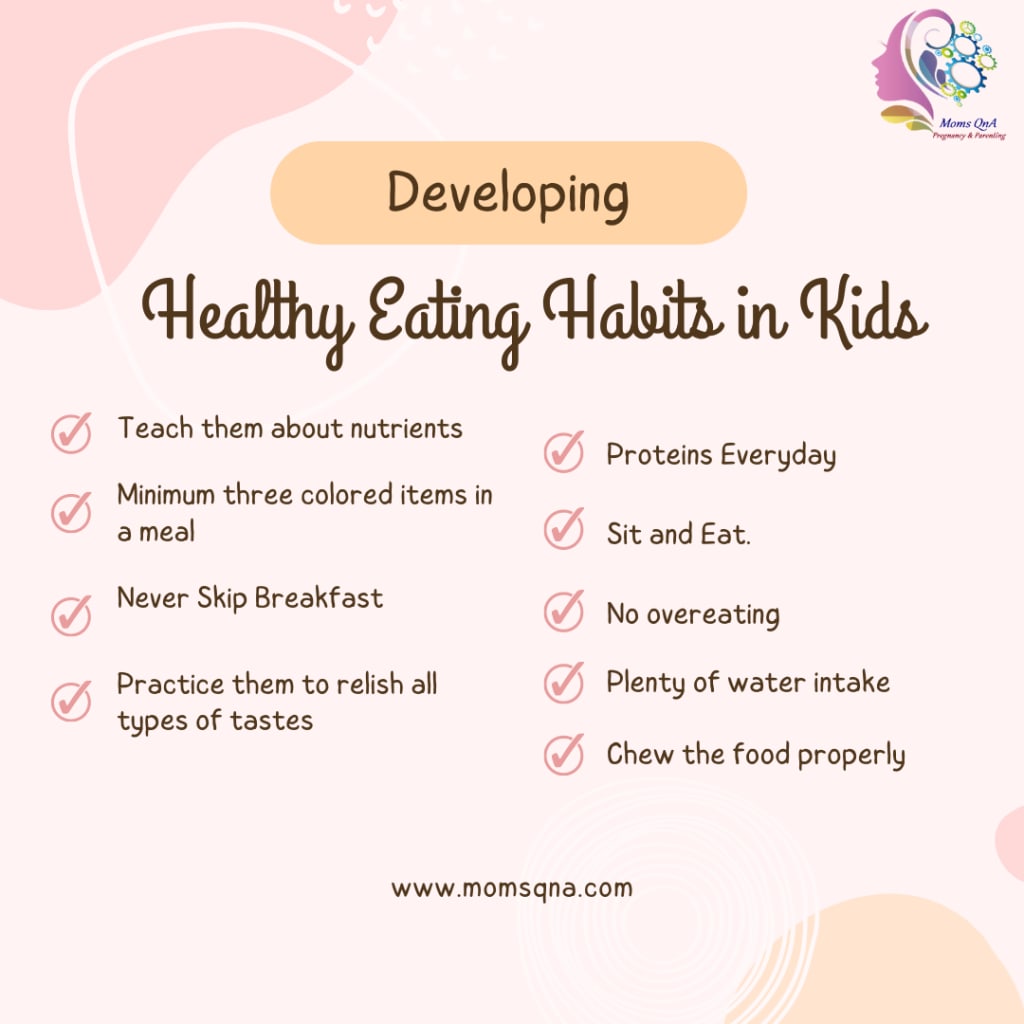 Developing Healthy Eating Habits in KidsLet children have all types of food, steamed, boiled, junk, oily, fried, baked, sweets etc., Let nothing be restricted completely, yet nothing be overdone. The child should develop such a gut immunity that he could eat and digest any food.