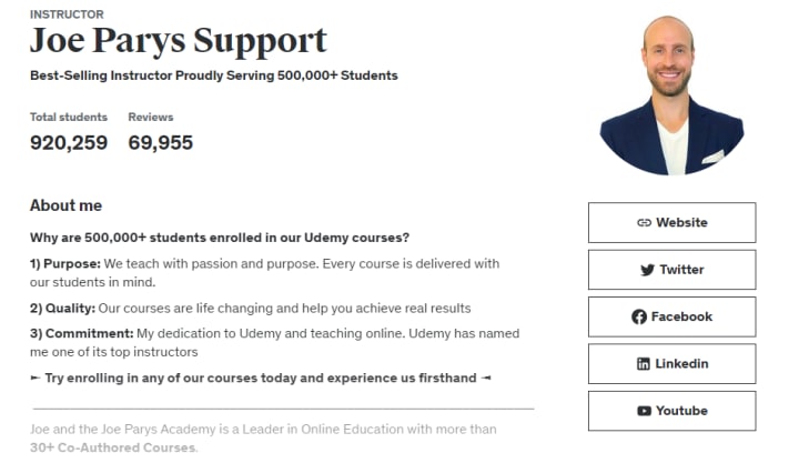 Joe Pary is one of the top instructors on Udemy who has served over 5 lakh students. Joe Pary's success story is an extreme example of what success on Udemy looks like, as he has made over $500,000 since 2015.