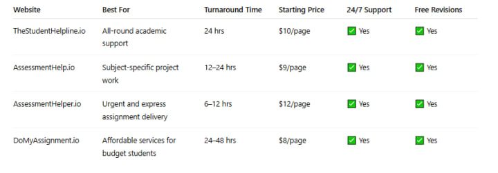 📊 Comparison Table: Best Assignment Help USA Websites (2025)