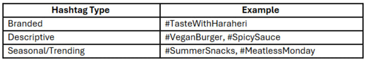Hashtags help discoverability. Mix branded hashtags with trending ones. Keep them relevant and concise.