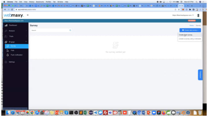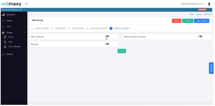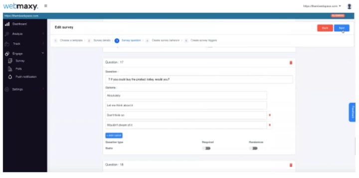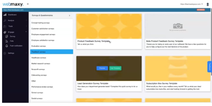 The last piece of data this user tracking tool helps you to collect is how your visitors and customers see you. You can set up a feedback survey with Webmaxy in minutes by following the following steps.