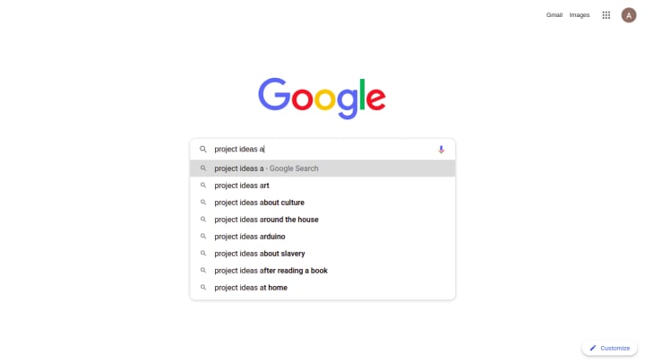 However, if push comes to shove, you can key in ‘project ideas about’ and then start typing letters, starting from a letter ‘a’. Google’s autocomplete feature will help you out here.