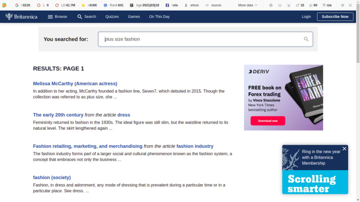 For example, these are the Encyclopedia’s results in ‘plus size fashion’: