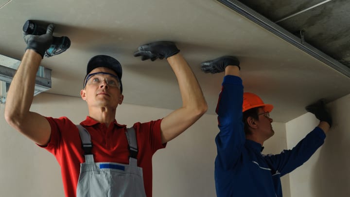 If you are installing a ceiling, be more cautious as the drywall sheets are quite heavy. Here is how to install them: