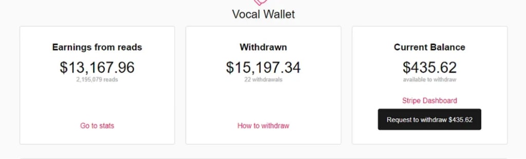 - You earn $6 per 1,000 reads, whereas a non-Vocal+ creator earns $3.8.