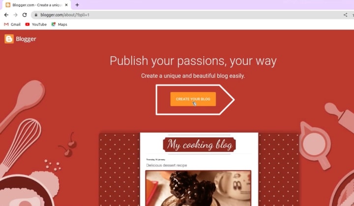 2. To begin, click the "CREATE YOUR BLOG" button. This is a large orange button in the page's middle. You will be asked to log in using your Google account.