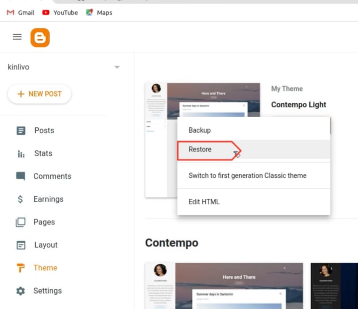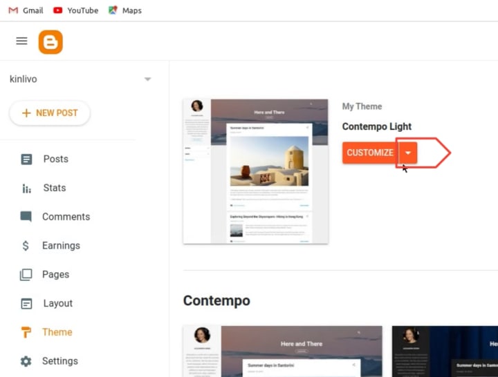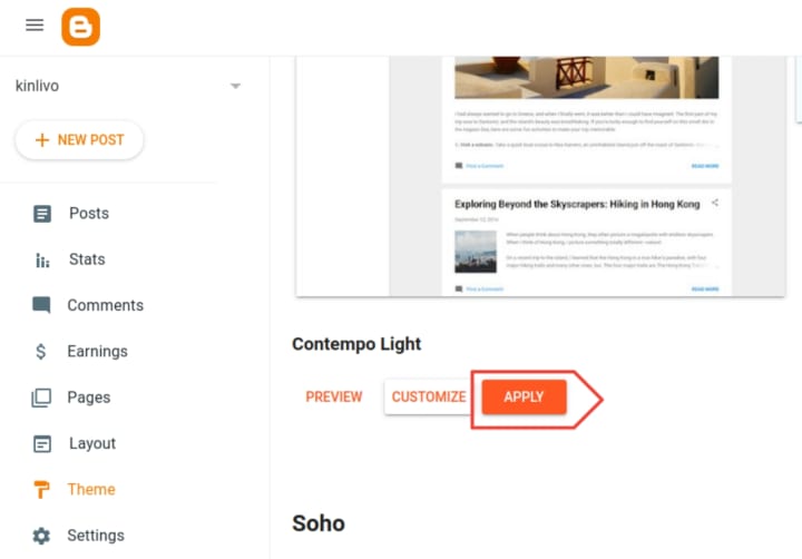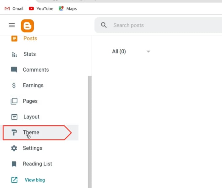 - In your Bloggers Dashboard, select "Theme" from the menu on the left.