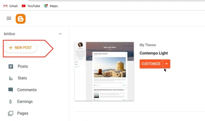 - From the admin dashboard of your blog, select "NEW POST" in the upper-left corner.
