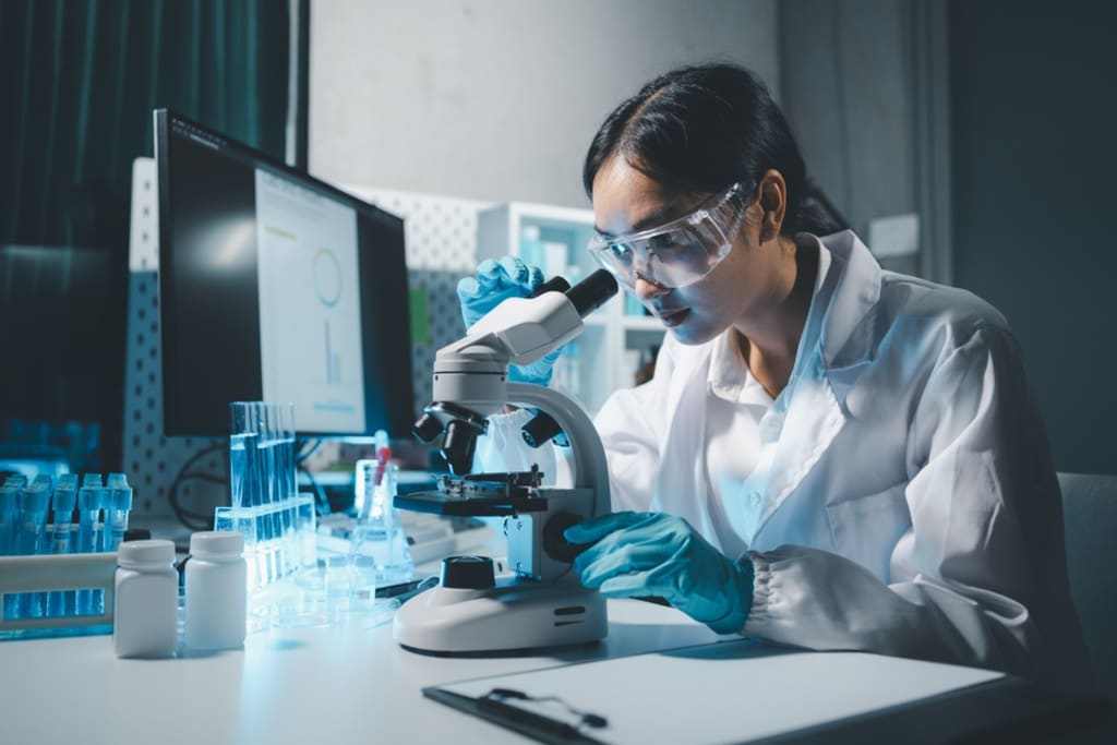 Study samples like blood or tissue to diagnose diseases and assist in treatment plans in healthcare labs.