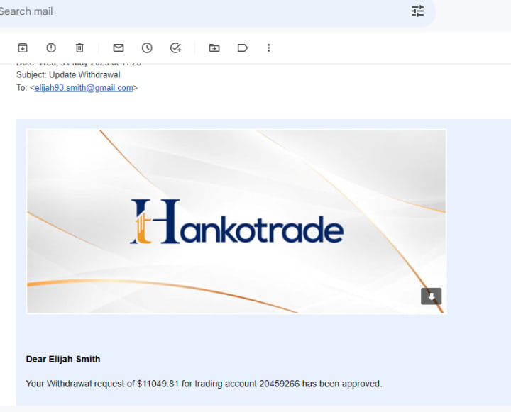 Look at the screenshots shared by the actual traders of their withdrawal emails. These emails prove that Hankotrade transfers money and doesn’t scam people.
