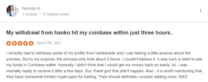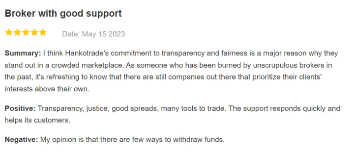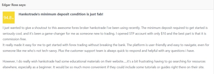 Take a look at some of the reviews shared by traders about Hankotrade: