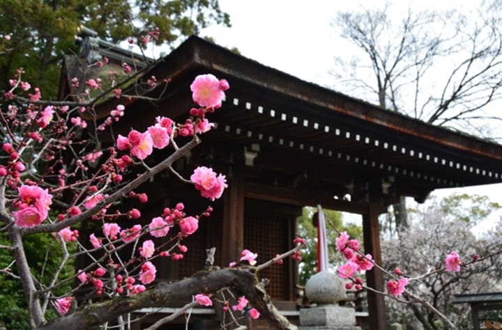 Among the many shrines guarding Heian-kyo, "Jonan-gu" is a shrine built on the southern side. About 150 weeping plums in the courtyard have also added a certain reputation to the shrine. Weeping plums blooming like a shower and drooping branches outline the scene like the ideal flower chanted by the Central Plains. "Jonan-gu" is full of plum blossoms, and the sweet and soft fragrance of plum blossoms lingers everywhere.