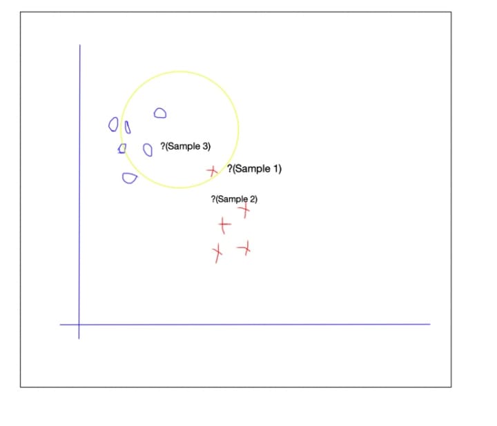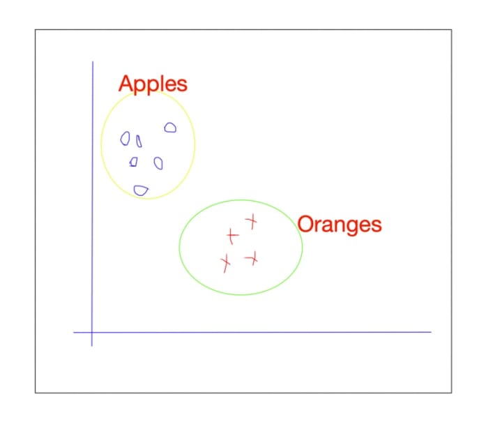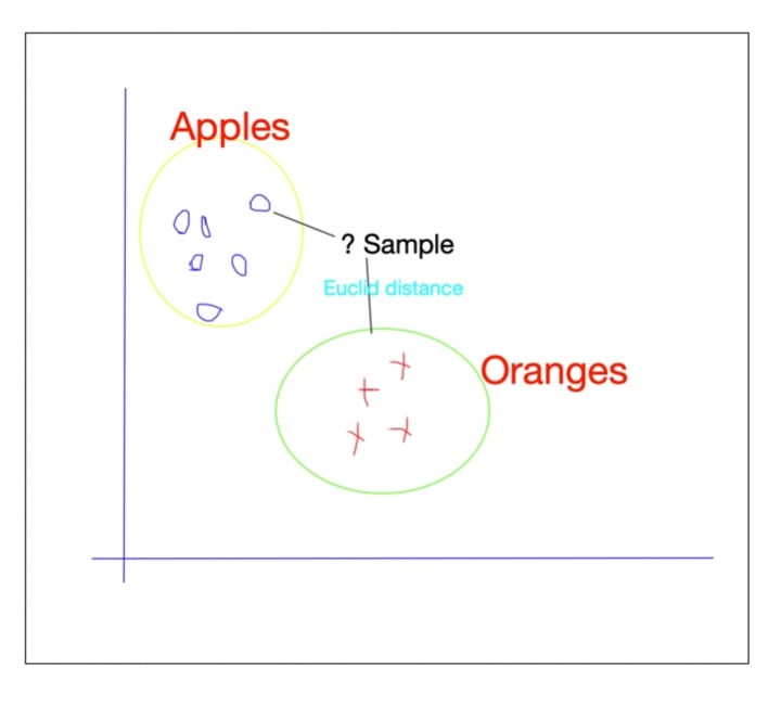 we gave a new sample, given a sample, come under the graph.The new sample will be near the apple, then it means it is apple.