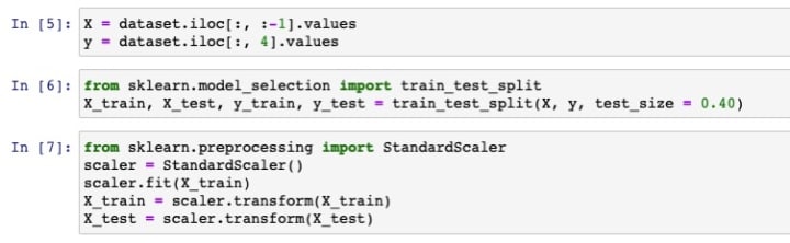 We are splitting the test data by test size of 0.4, which means from the data, it split into 2 pieces. 60 percent rows are for training data, and 40 percent rows are for testing.